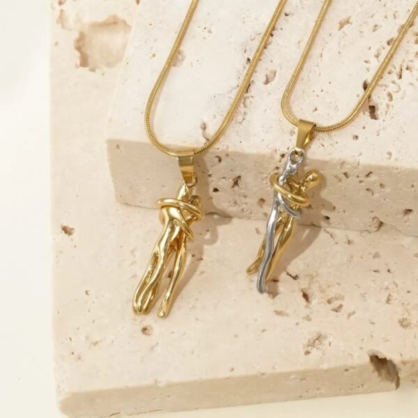 Celebrate connection, unity, and timeless elegance with this Abstract Embrace Pendant Necklace. Designed as two fluid, sculptural figures intertwined in a graceful hug, this pendant captures the beauty of closeness and emotional bonds in a modern, minimalist form.